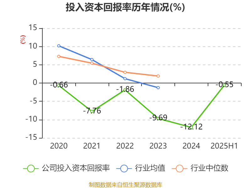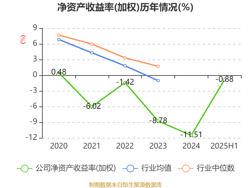 盈利能力方面, 2025年上半年公司加权平均净资产收益率为-0.88%,同比上升5.44个百分点。公司2025年上半年投入资本回报率为-0.55%,较上年同期上升5.95个百分点。