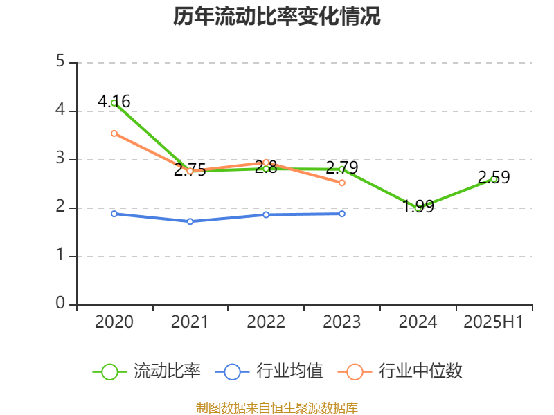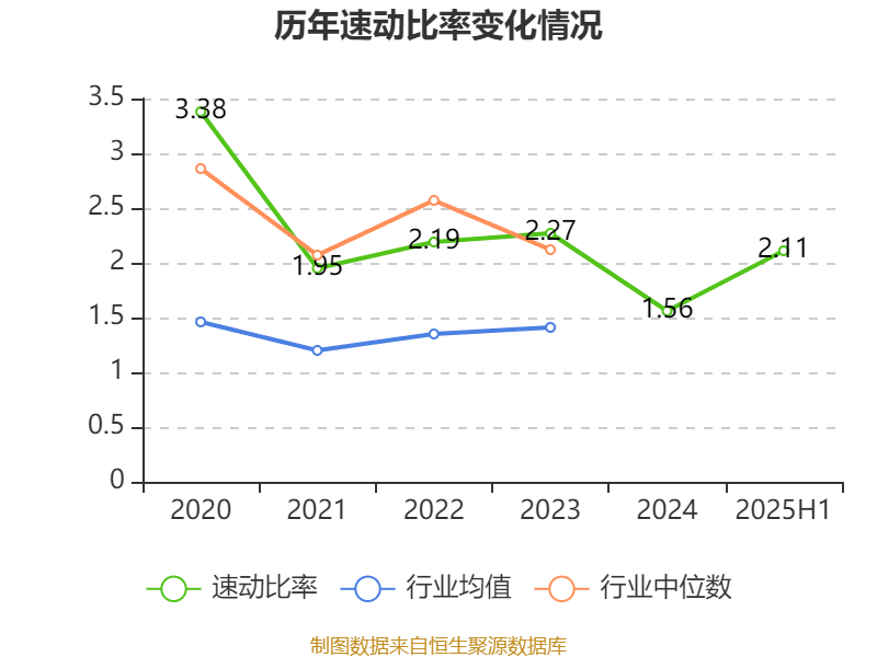 2025年上半年,公司流动比率为2.59,速动比率为2.11。