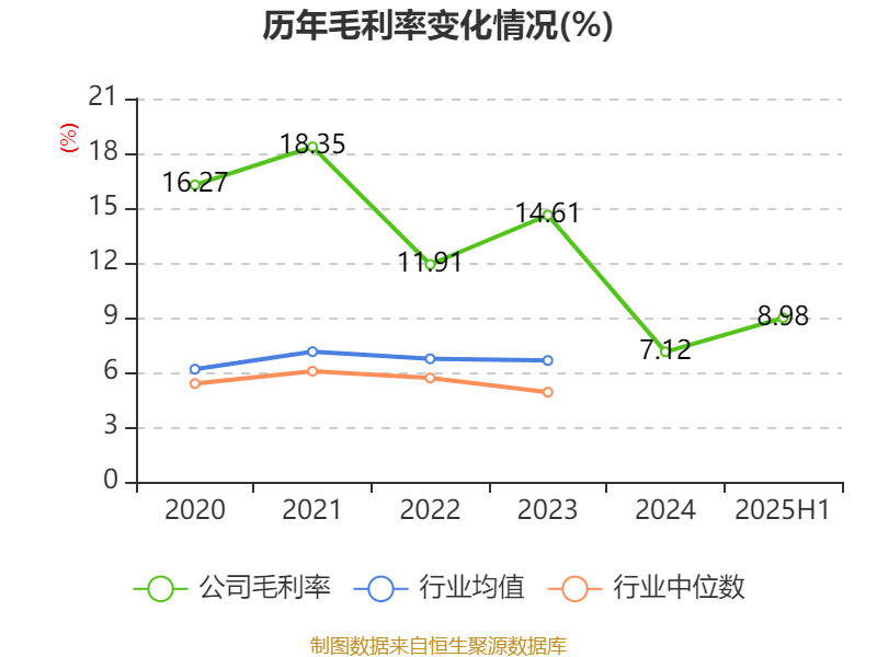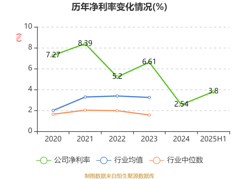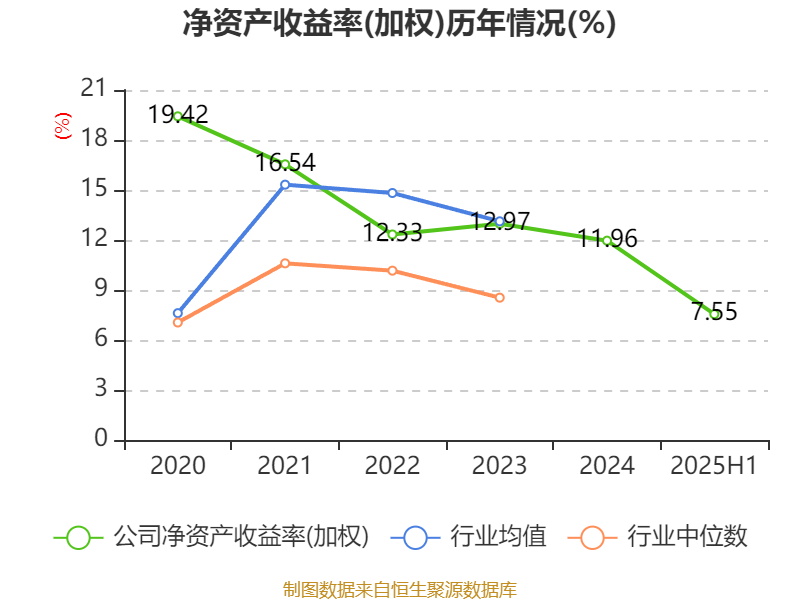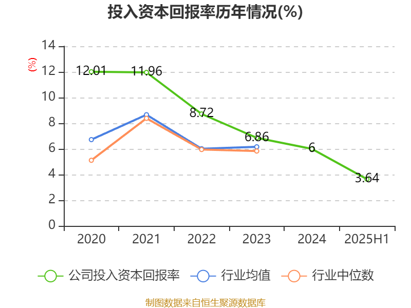 盈利能力方面, 2025年上半年公司加权平均净资产收益率为7.55%,同比下降1.35个百分点。公司2025年上半年投入资本回报率为3.64%,较上年同期下降0.68个百分点。