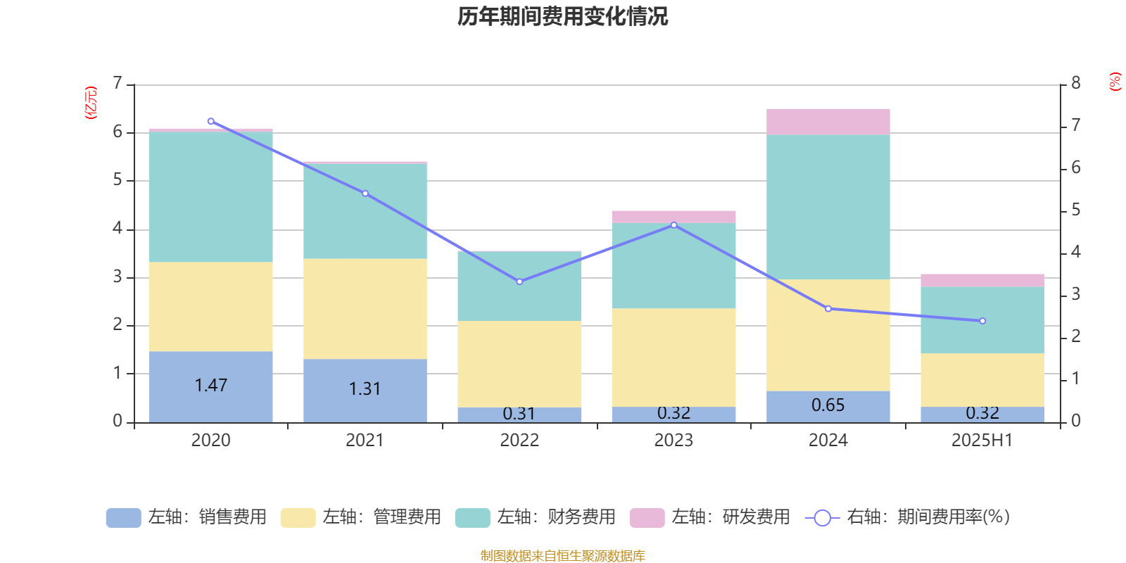 2025年上半年,公司流动比率为1.41,速动比率为0.37。