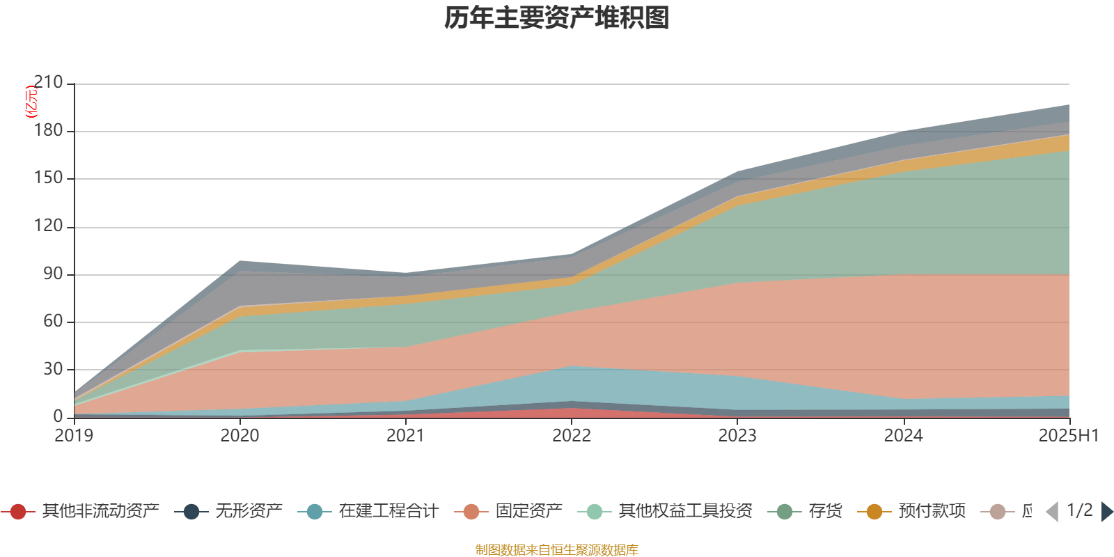 资产重大变化方面,截至2025年上半年,公司固定资产较上年末减少2.6%,占公司总资产比重下降4.73个百分点;存货较上年末增加20.8%,占公司总资产比重上升3.76个百分点;预付款项较上年末增加39.54%,占公司总资产比重上升1.1个百分点;货币资金较上年末减少11.93%,占公司总资产比重下降0.96个百分点。